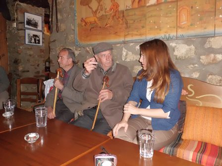 Following a very successful morning on the battlefields we headed to lunch in the ravine close to the castle at Platamon. We had an excellent lunch and then headed into the mountains to Pantelemonas, a old traditional village where cars have limited access. We were met there by the local historian in company with 2 old gents,